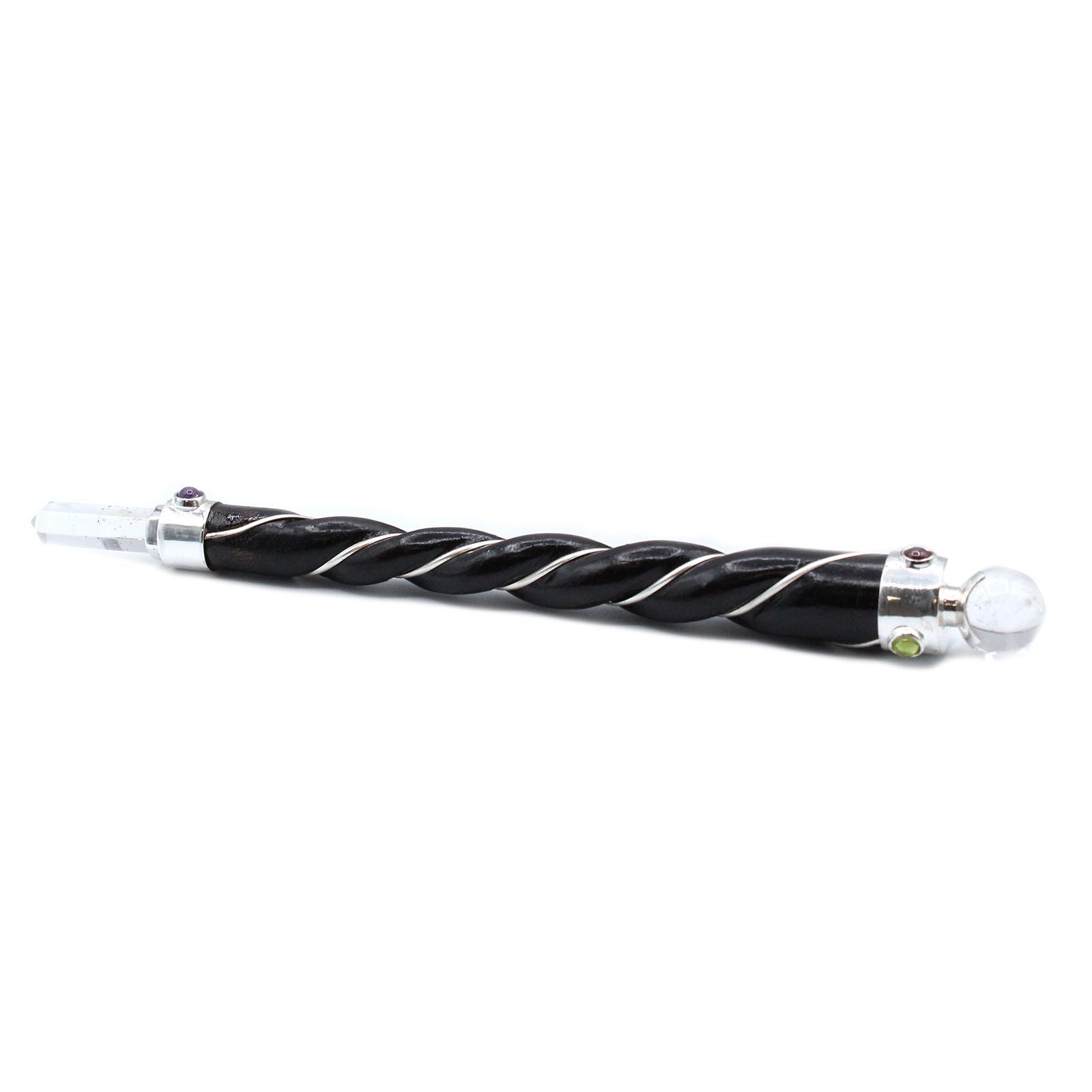 Twisted Healing Wand - Silver Rock Quartz Sphere